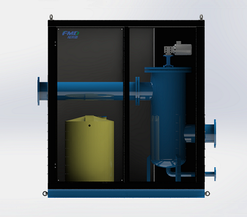 容水機組是一種適用于循環水系統處理的機組,包括對管道中的水進行固液精確分離的DIS(Double isolation)系統,促進榮水劑充分榮合的PF(Promotethe fusion)系統,以及控制DIS 系統、PF 系統運行的IC控制系統。DIS 系統通過法蘭連接在系統主管道上、DIS 系統通過管道與PF 系統相連接,PF 系統通過管道與系統主管道相連接,DIS 系統、PF 系統通過數據線與IC(Integrated control)控制系統相連接。