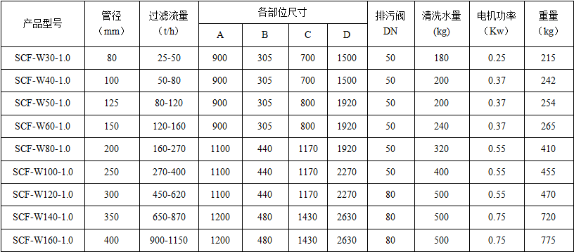 臟水從過濾器進口進入,首先經過粗濾網濾掉較大顆粒的雜質,然后到達細濾網。在過濾過程中,細濾網逐漸累積水中的臟物、雜質,形成過濾雜質層,由于雜質層堆積在細濾網的內側,因此在細濾網的內、外兩側就形成了一個壓差。當自清洗過濾器的壓差達到預設值時,將傳遞一個開關信號到控制箱PLC系統啟動一次清洗循環。清洗過程:全自動負壓吮吸式過濾器的清洗機構是一個不銹鋼材質的作螺旋式上下運動的吸吮掃描器,它是空心結構,在它的軸線上按一定的距離垂直分布著若干個吸污嘴,吸吮掃描器內部與3”排污閥相通,當排污閥打開,過濾器內部水壓和外部大氣壓之間形成的壓差使每個吸污嘴產生強勁吸力,在每個吸污嘴,此時水流從濾網外向內反向高速流出將貼在濾網內壁的雜質沖洗下來進入吸污嘴通過吸吮掃描器空心軸,然后通過排污閥排出,完成整個清洗過程大約需要30-60S,此時壓差恢復正常,一個清洗過程結束,進入過濾狀態。在清洗過程中,系統不斷流。